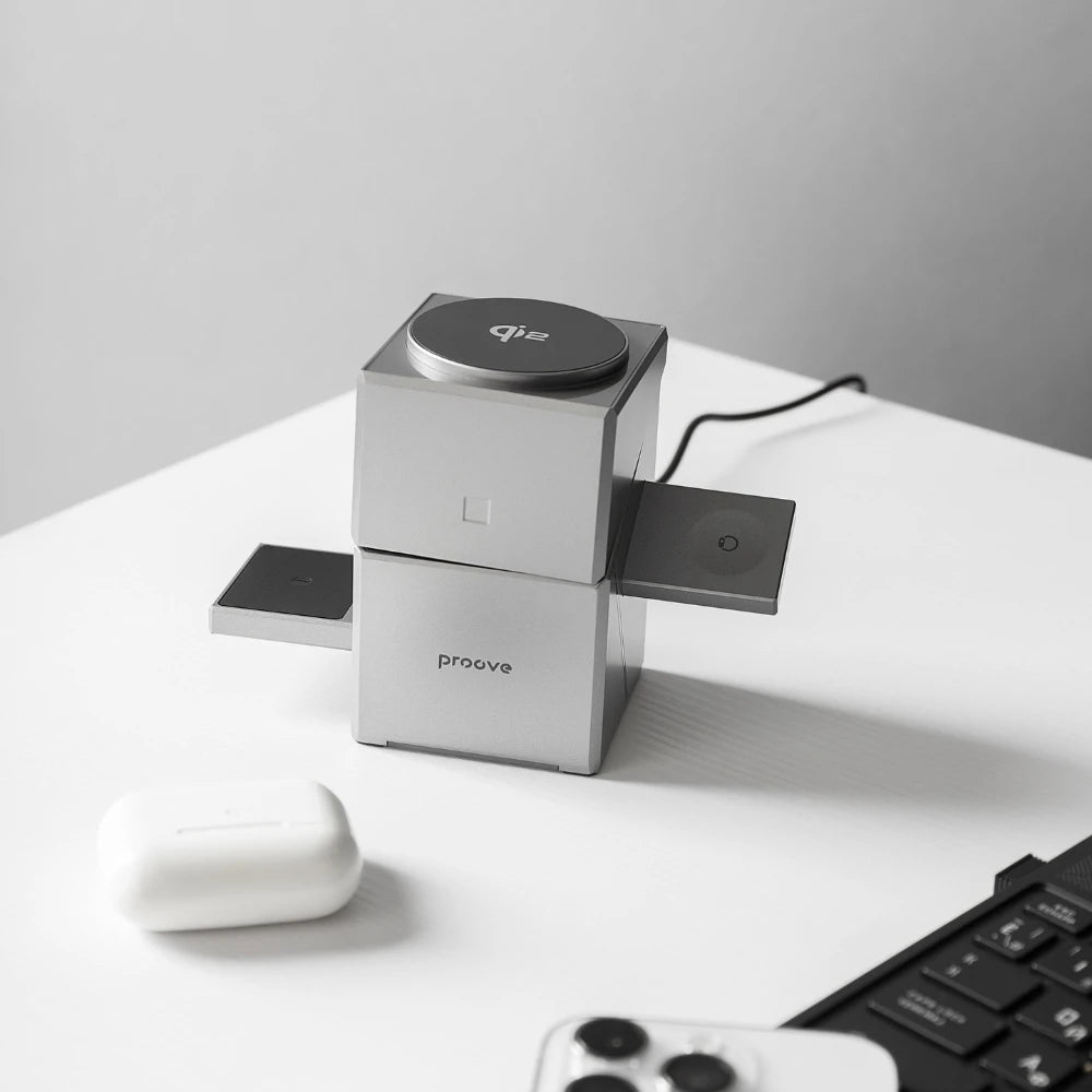 Stay powered up with Cube Dock®—the ultimate multi-device charger! Experience lightning-fast charging for your Qi-enabled devices, while its innovative auto-rotating phone feature and pop-up dock keep your EarPods and smartwatches organized and charged simultaneously. With the ability to charge multiple devices at once, Cube Dock® eliminates cable clutter and maximizes efficiency. Compact, lightweight, and stylish, it's the perfect addition to your home, office, or on-the-go lifestyle.